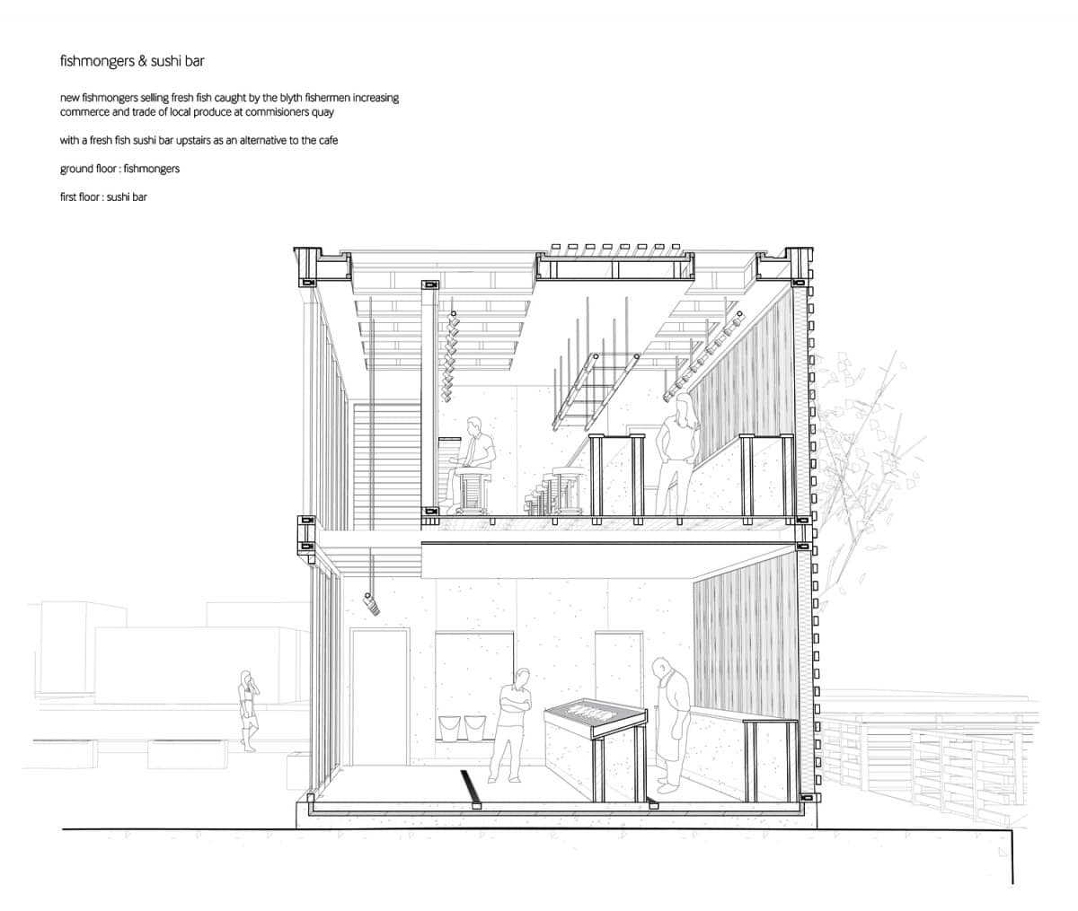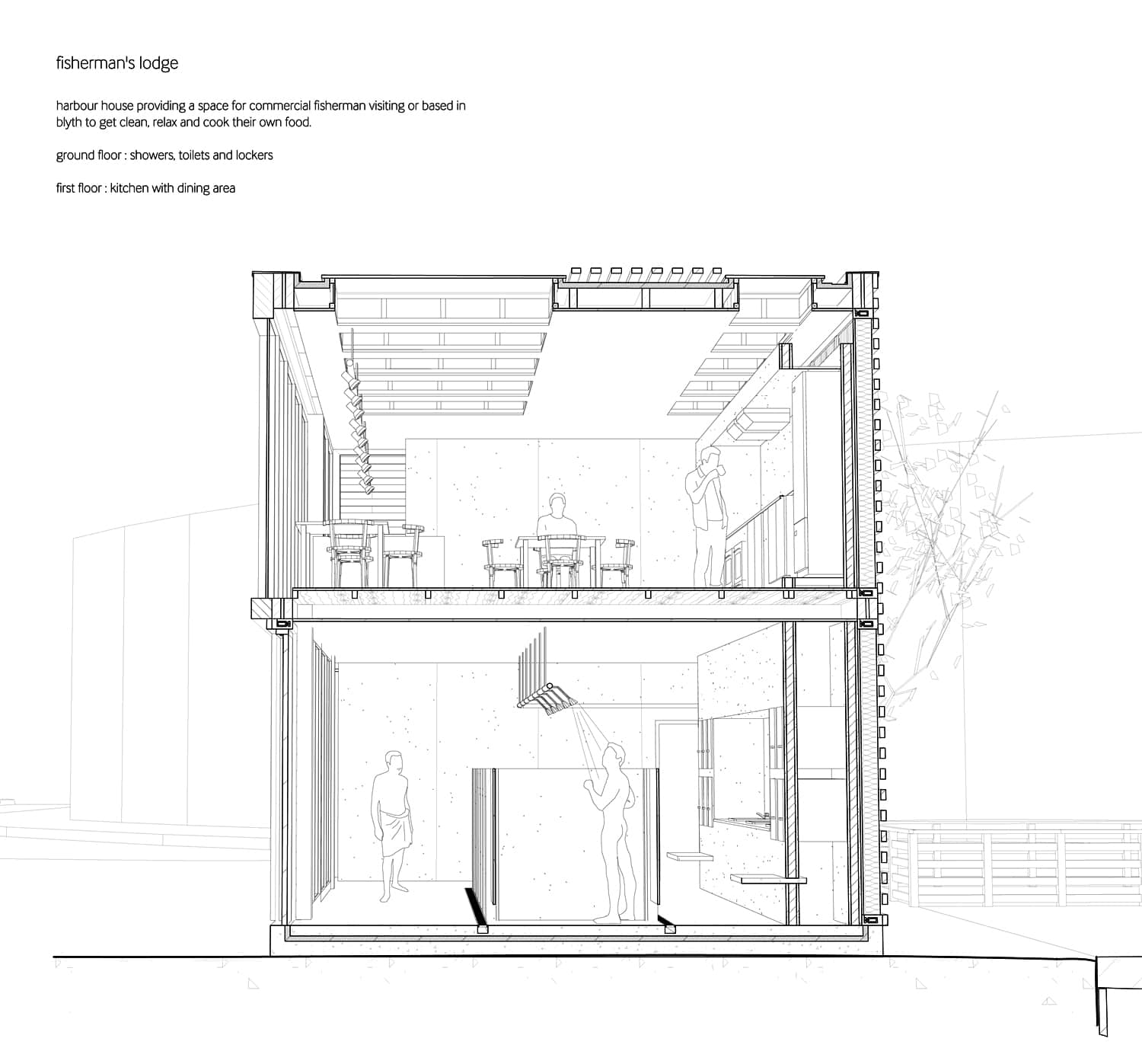 Final thesis of Masters degree in Architecture at Northumbria University. The project is a proposed boat yard and visitor centre for the Blyth Tall Ship Project accompanied by a series of harbour side interventions, designed to act as a catalyst in reconnecting Blyth to its history. A series of unique interventions offering different services would be designed as part of a harbour walk culminating in a visit to the Tall Ship Boat House.