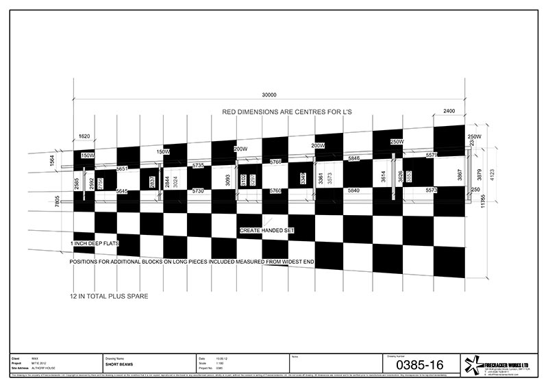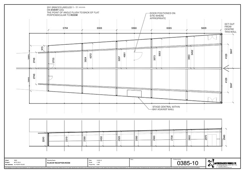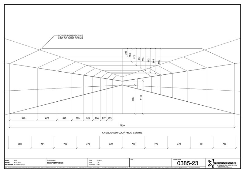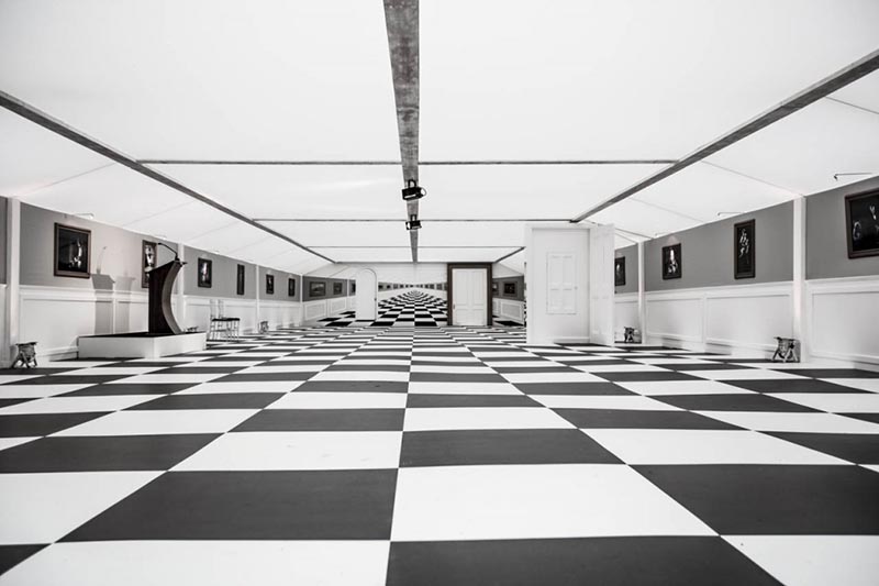 A challenging but fun project to work on at Firecracker Works. The brief was to create a room that challenges perspective within a marquee, wanting to give the guests the impression of growing in size as they walked to the far end. The effect was achieved through physical models, virtual models, careful planning and a bit of trial and error.